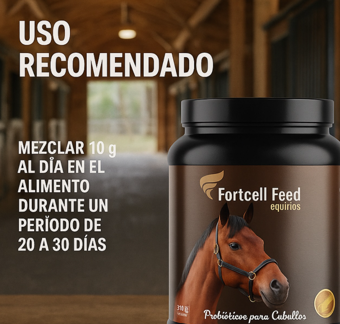 Mezcla de levaduras, prebióticos y probitióticos microencapsulados que mejora el sistema imune del caballo y estimula la micorbiota intestinal saludable, esto permite incrementar la resistencia a enfermedades y disminuir la presencia de cólicos y problemas digestivos. Fort Cell Feed, permite un mejor aprovechamiento de los nutrientes y mejora el apetito, haciendo que el caballo gane peso y mejore su condición corporal.