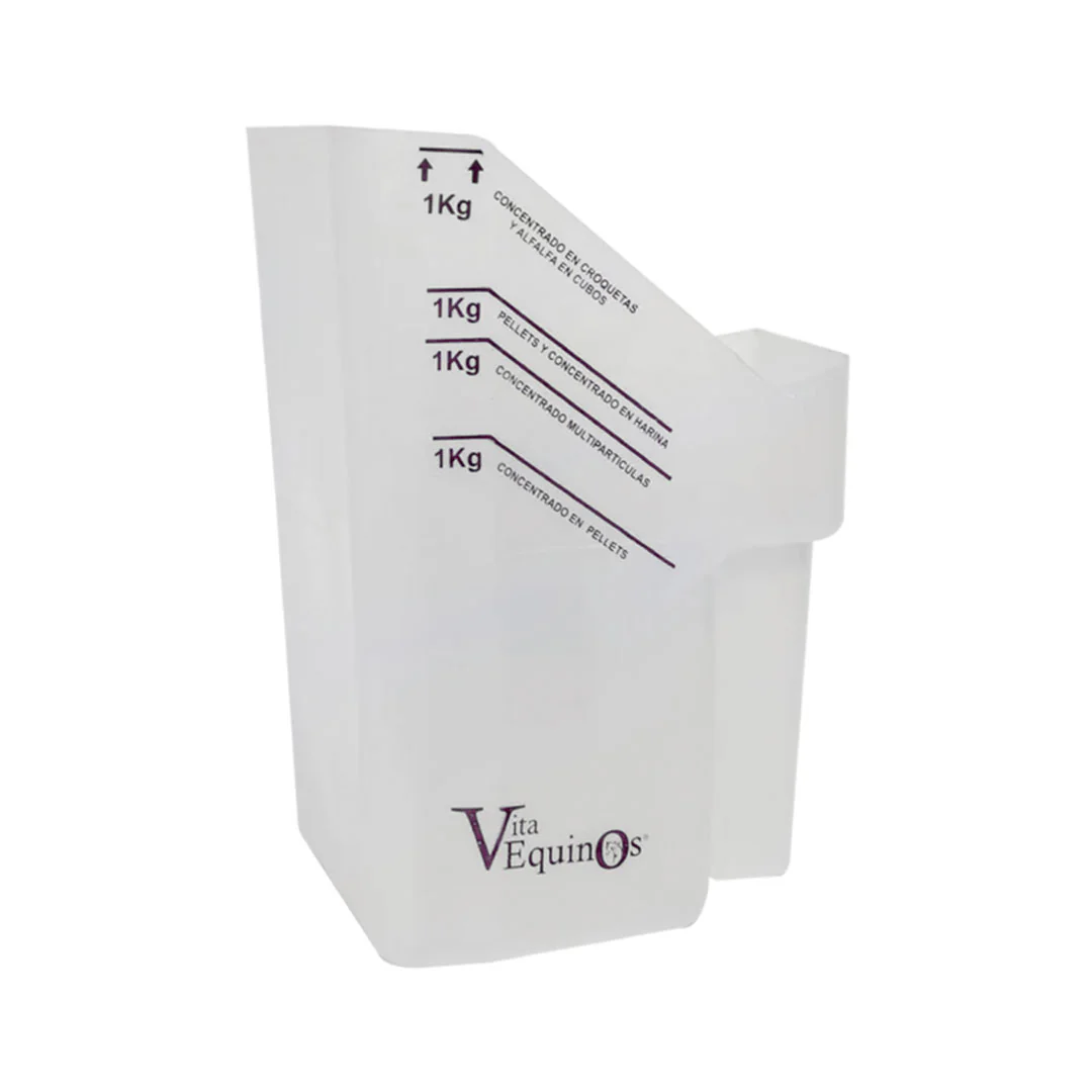 Marcada con las medidas correspondientes a 1 kg de los alimentos balanceados (concentrados) más comunes del mercado.